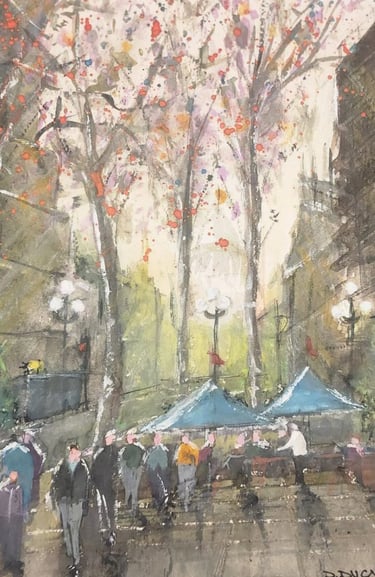La pintura aparece como una continuidad natural: otra forma de trabajar con la luz, el espacio y la composición.
